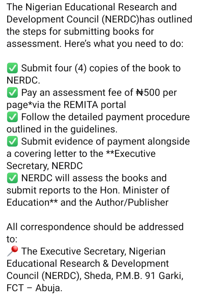 Local authors across Nigeria have condemned the Nigerian Educational Research and Development Council (NERDC) over its controversial book assessment guidelines, particularly the requirement to pay a fee of N500 per page, including cover pages, for books submitted for approval for use in Nigerian schools.