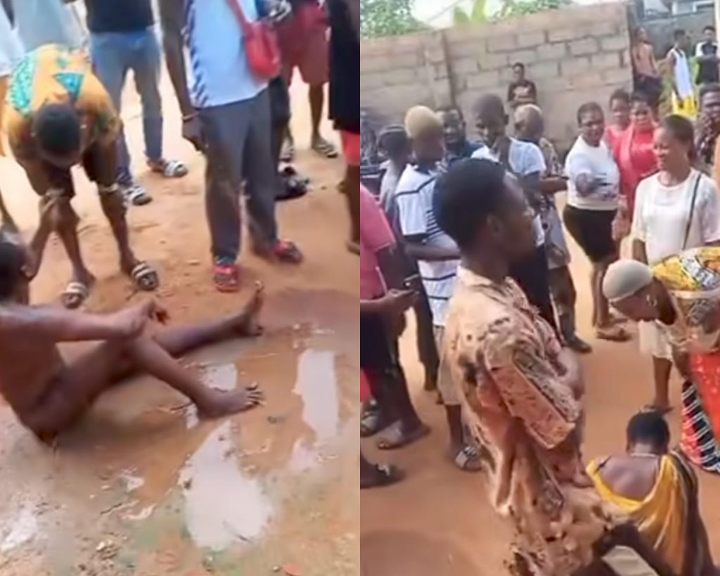 Angry youths reportedly dragged the pair out of a house, stripped the pastor completely naked, and sat him on bare floor. The woman was also dragged, taunted, and later stripped naked by a lady on the mob.